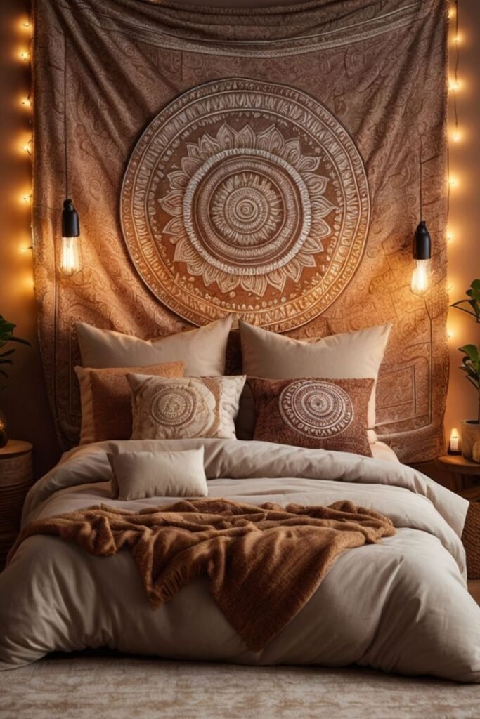 The style of tapestry you select sets the tone of a room. A bold mandala design creates a relaxed bohemian vibe, especially when combined with natural textures and greenery. Minimalist homes benefit from simple geometric or abstract designs in neutral tones, which bring elegance without distraction.